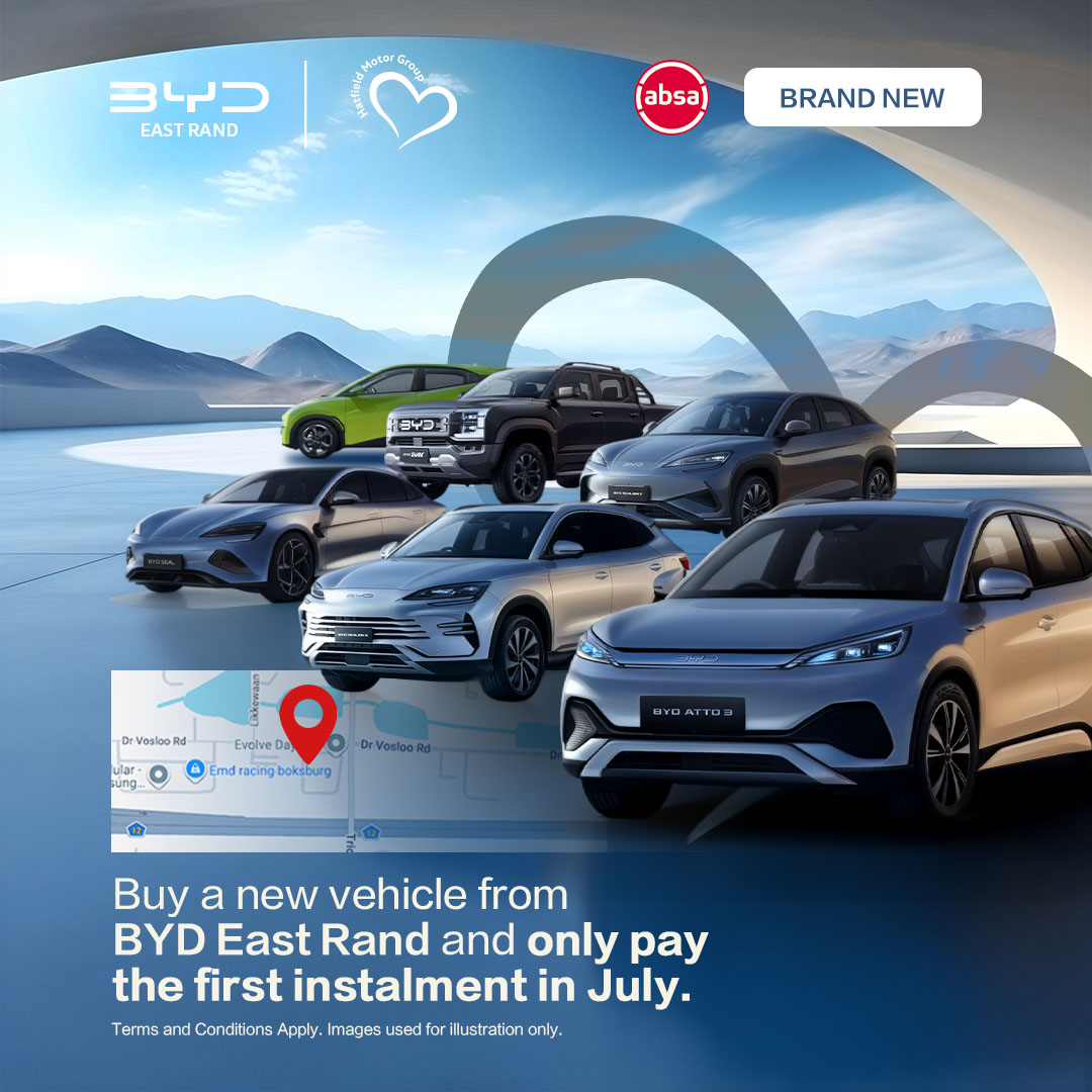 Buy a new vehicle from BYD East Rand and only pay the first instalment in July. |